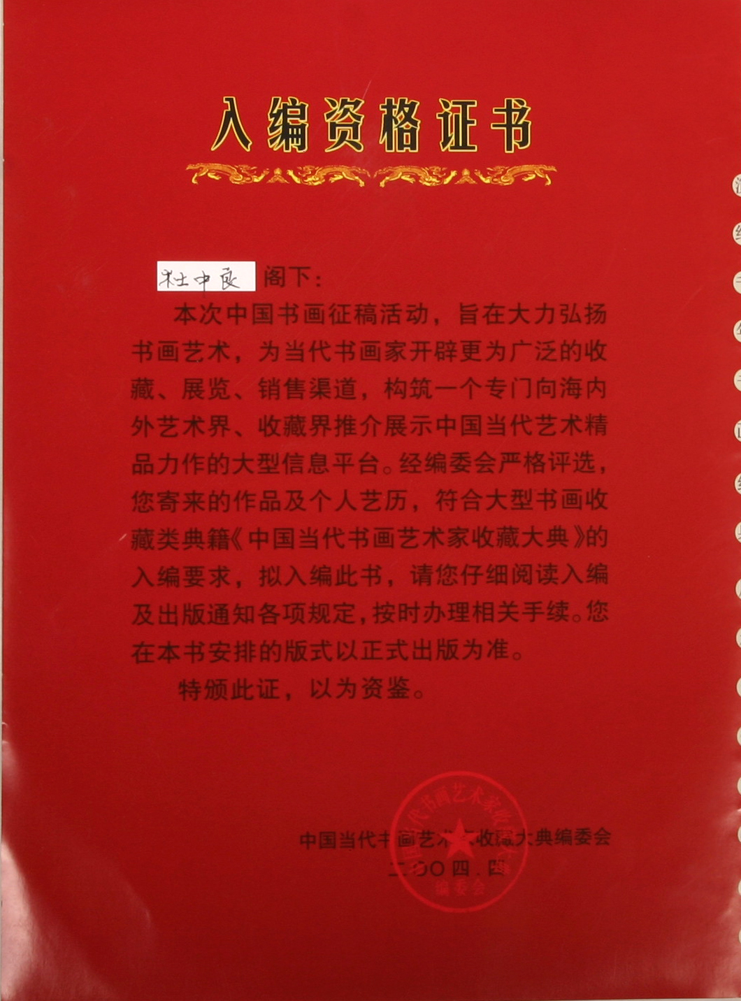 入編資格證書